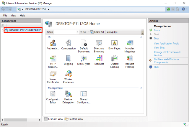 Başlama IIS Yöneticisi. Bunu yapmanın hızlı bir yolu, koşmak komutunu yazdıktan sonra inetmgr ve tıklayarak OK düğmesine basın.