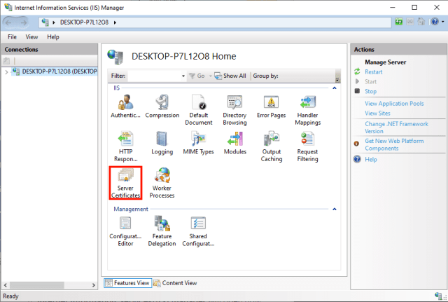 Çift tıklayın Sunucu Sertifikaları altında bulunan simge IIS pencerenin orta bölmesinde.